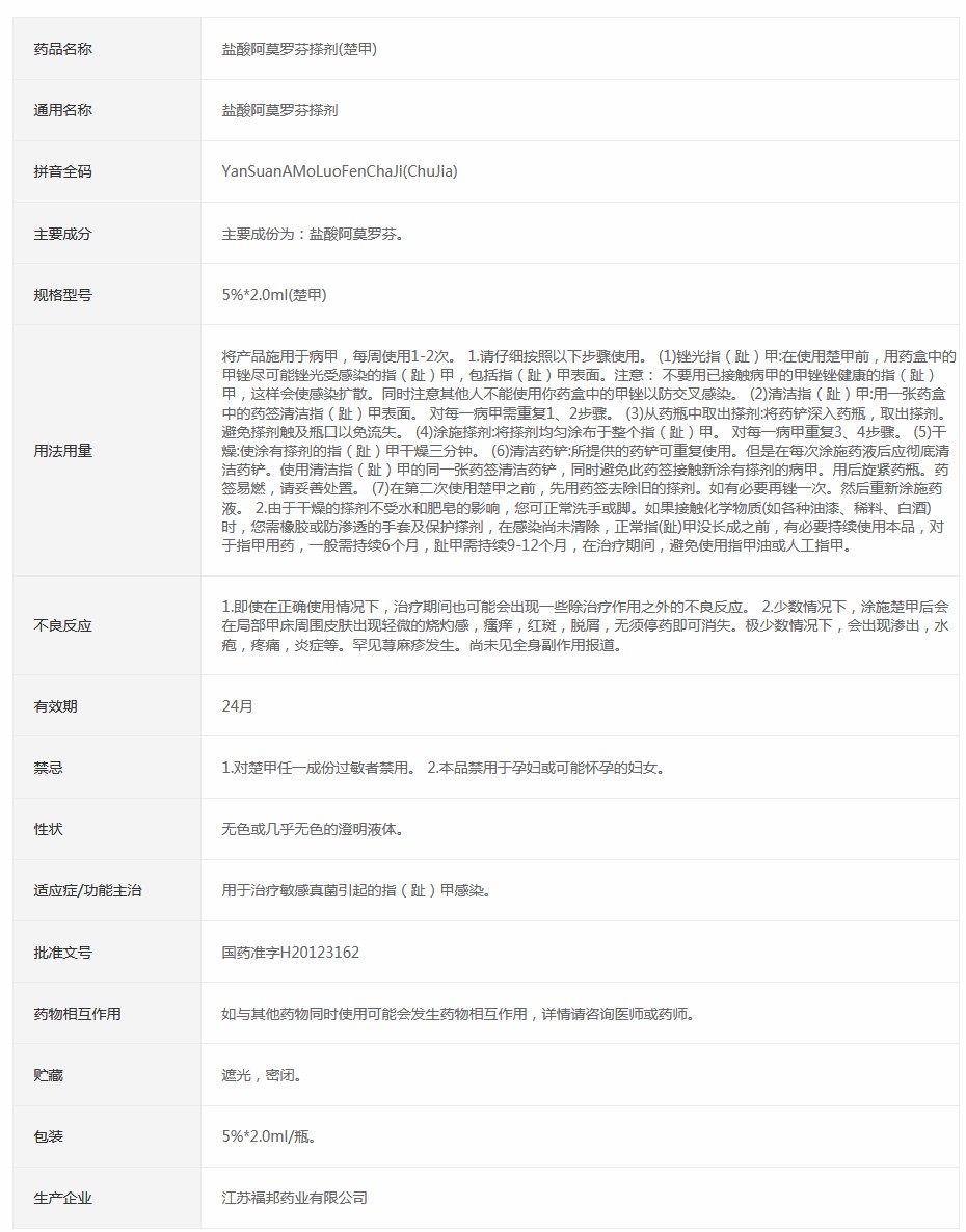 盐酸阿莫罗芬搽剂(楚甲)